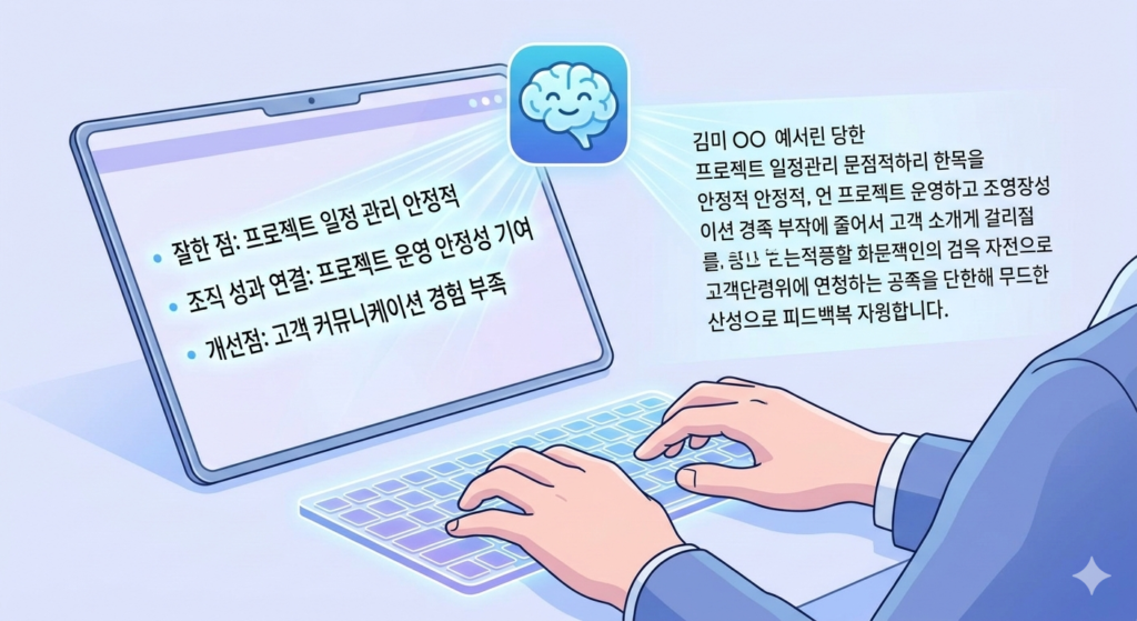 AI는 이를 기반으로 다음과 같은 평가 문장을 생성할 수 있다.