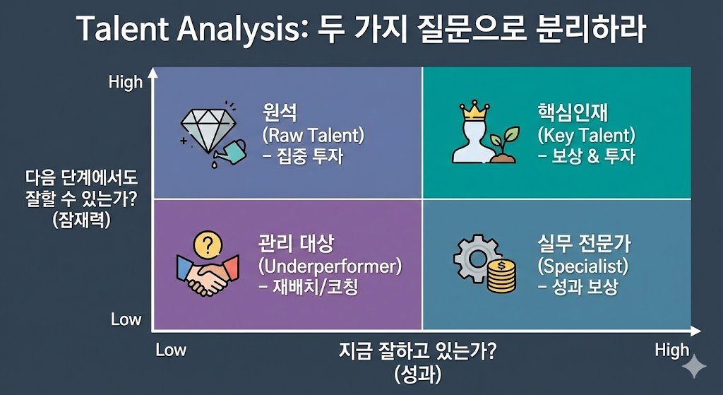 “성과는 보상의 근거이고, 잠재력은 투자의 근거다. 이 구분이 Talent Management의 출발점이다.”